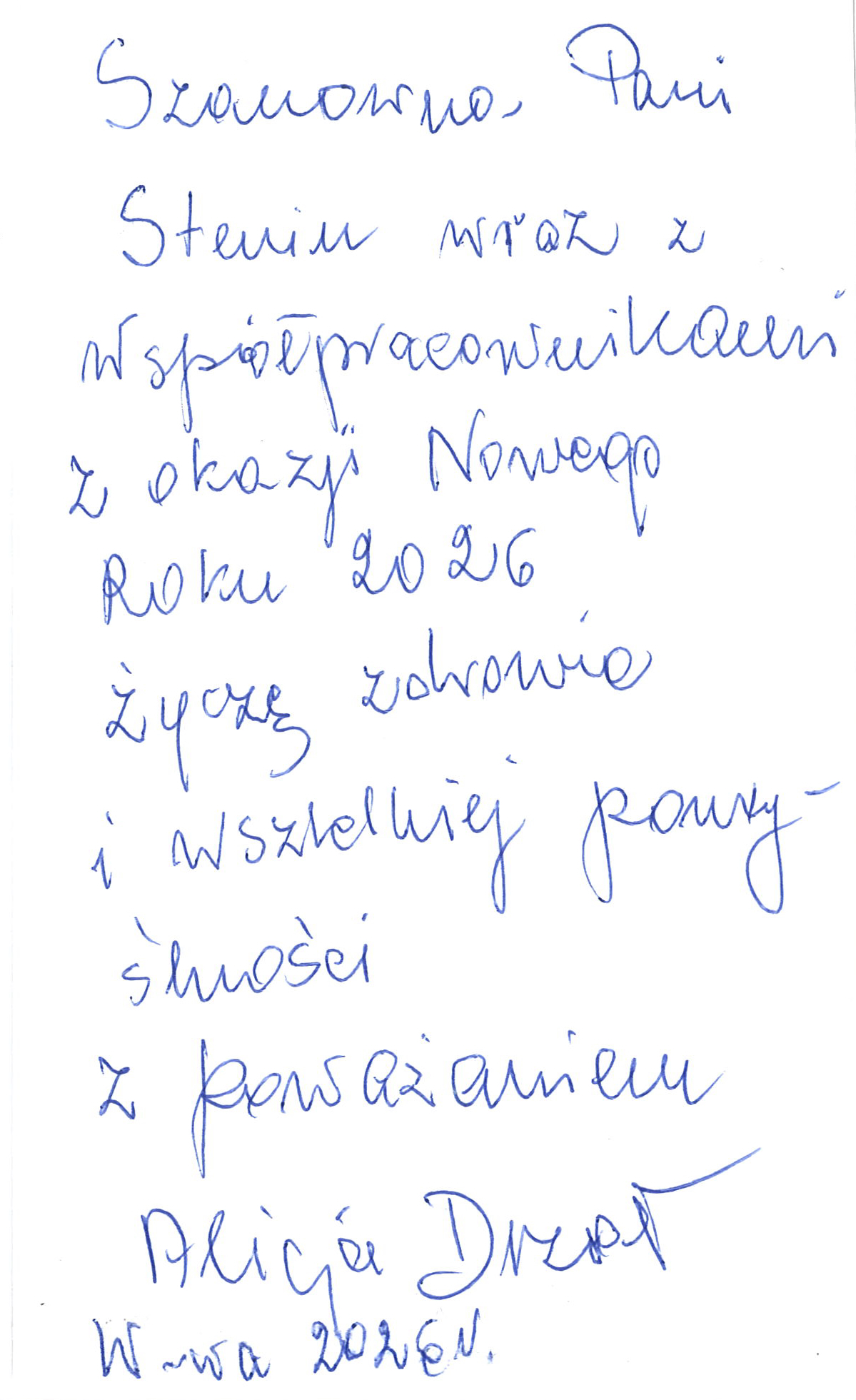 At the same time, we are attaching our warm wishes for the New Year. We wish you health, all the best, and the fulfillment of your plans and dreams. Like you, we look forward to a life in peace around the world. We trust that this difficult time will pass and that the forces of goodness and peace will ultimately prevail. May God keep you in His care.
